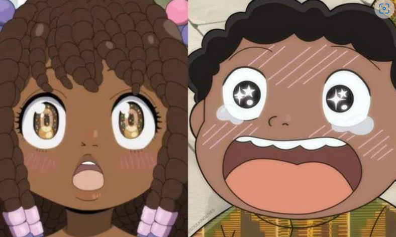 从几年前推特就开始流行「动漫黑人化」,指的将一些当下热门的动画作品都会经过他们的修改装点上黑人的标签,偏厚的嘴唇,自然卷的头发,是一种完全扭曲原作而进行二次创作;