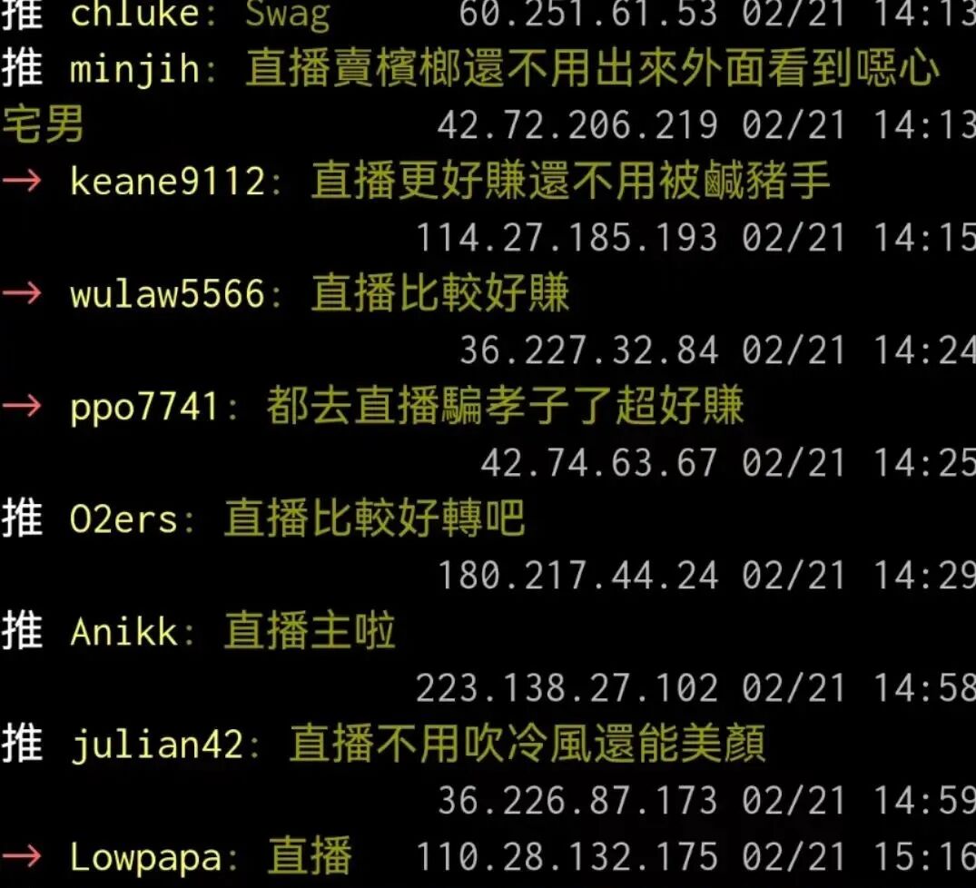 如果说,千禧年之前的漂亮女孩们要想不进入色情业就赚到其它行业几十倍的钱,就只有槟榔西施一条路;那么现在她们的选择可太多了,带货主播、短视频博主、甚至是网红,都比还需要动手包槟榔的活计简单得多。