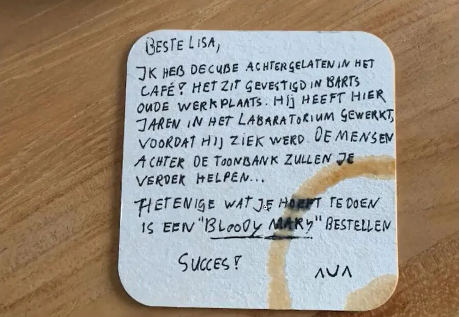 于是,世界各地的《锈湖》粉丝们联合起来,通过曲折而离奇的解密后,依次找出了10块方块,并解锁了10份游戏人物的病历。当最后一个方块在荷兰的一家咖啡馆地下室中被找到时,前去取方块的粉丝,在那里见到了贯穿《锈湖》系列的经典角色:乌鸦先生。