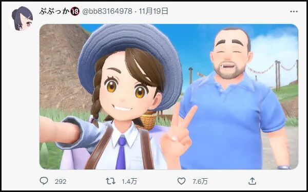 前段时间推主 ぶぶっか 发布了一张自己在《宝可梦朱/紫》里与路人大叔的合照,不知为何被推特系统判定为敏感内容(涉及儿童色情),被软屏蔽了。