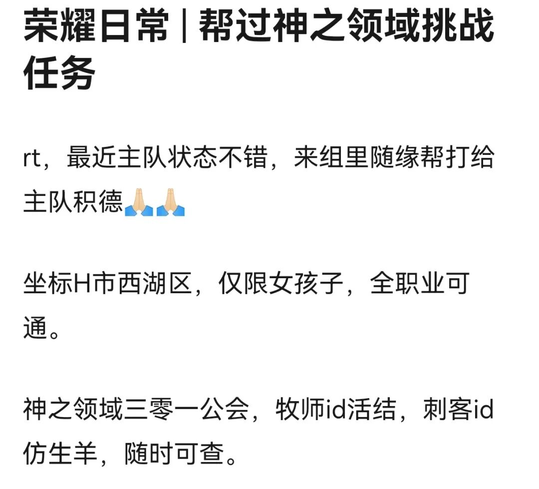 甚至还能遇到免费帮忙过《荣耀》内任务的好心人。