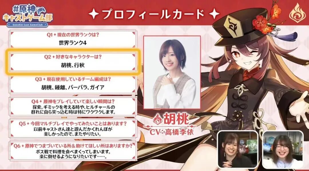 算上为手游配音的角色的话更是不得了,FGO的玛修和《原神》的胡桃基本属于长期饭票。