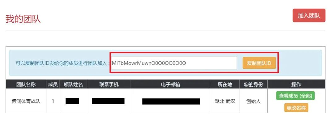 步骤三:团队创建成功后,可在个人中心“我的团队”复制团队ID发给团队成员加入团队