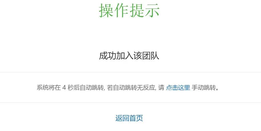步骤四:弹出“成功加入该团队”提示