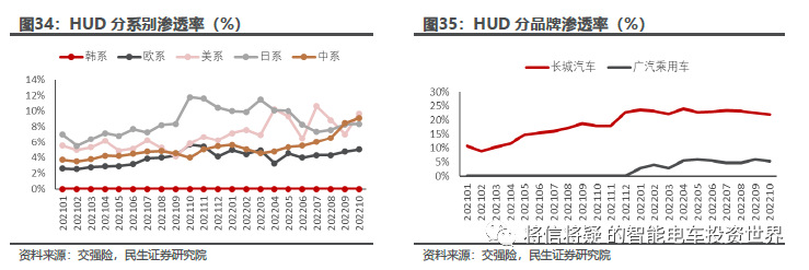3.1.1抬头显示:抬头显示渗透持续提升,未来发展可期