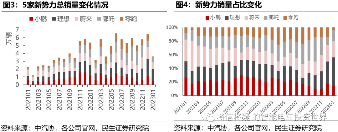 5家新势力12月销量总和3.60万辆,同比-33.22%,环比-44.27%。