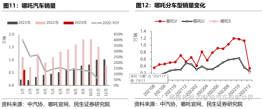 哪吒12月销量达0.60万辆,同比-45%/环比-23%。新车哪吒S已正式开启用户交付,当月交付量达1517台。