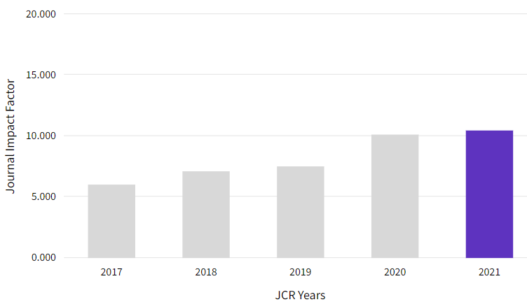 Diabetologia 杂志的影响因子近年来一直在稳定增长,2017-2021年的SCI影响因子分别为6.023、7.113、7.518、10.122、10.460,增长趋势稳定。