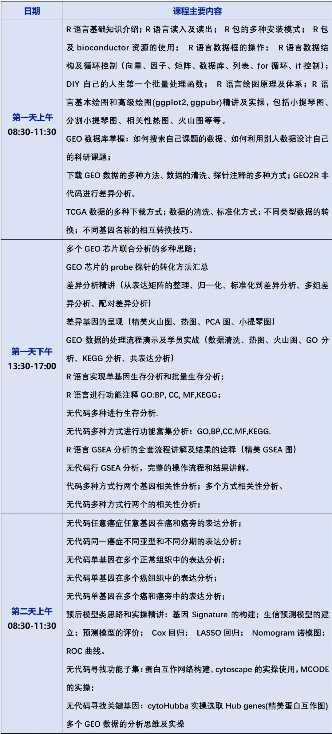 (6)课程结束当天,即可完成自己领域的3分水平生信分析全过程。