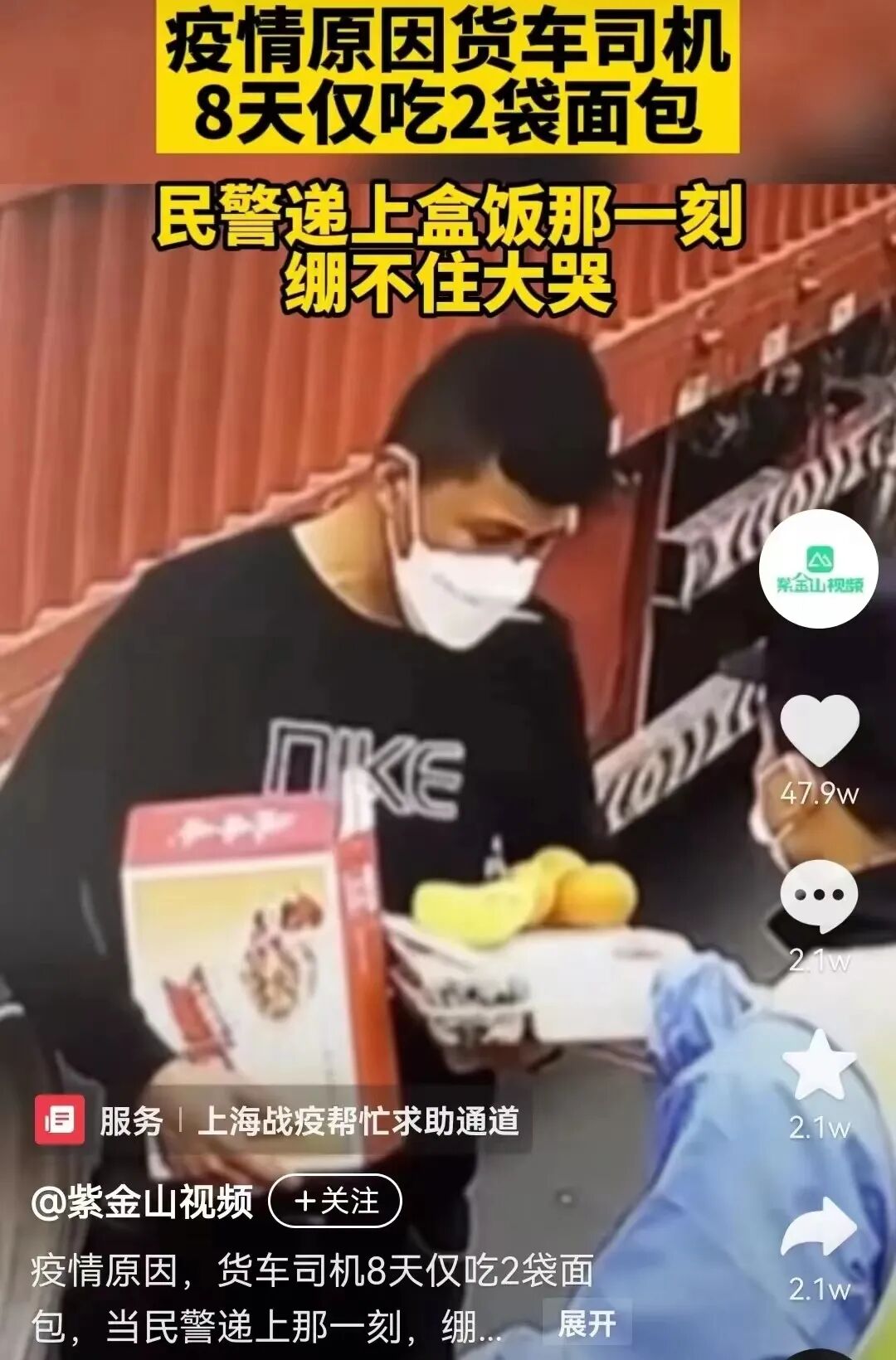 这些货车司机没有人拉的是自己的东西,都是拉的上海人的一日三餐和生活所需。在疫情的这段日子里,他们遭了很多罪,受了很多的苦。面对着太多的心酸和无奈。