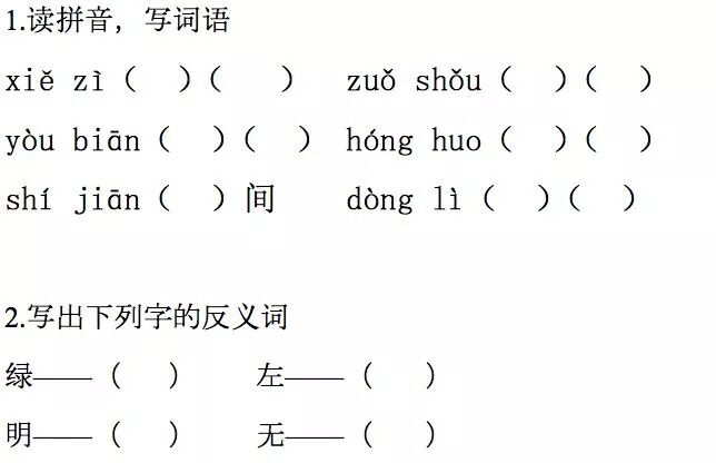 1.写字 左手 右边 红火 时 动力