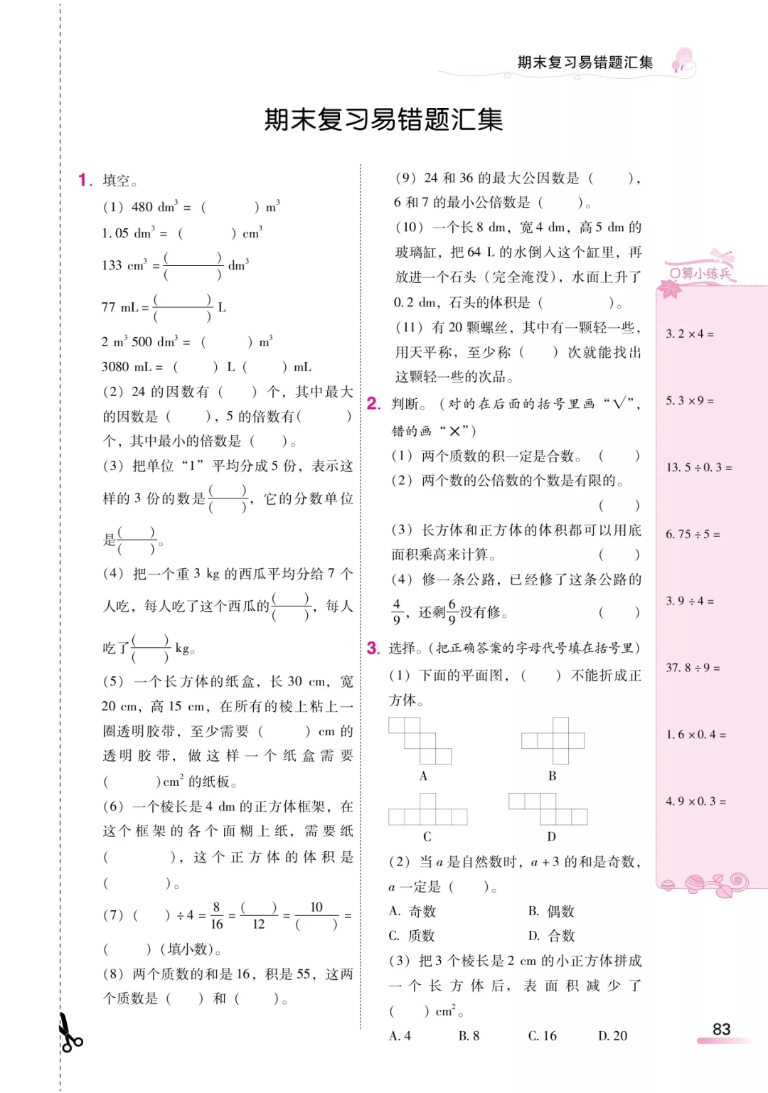 点此领取:人教版数学五(下) 《课时学练测》1-5单元
