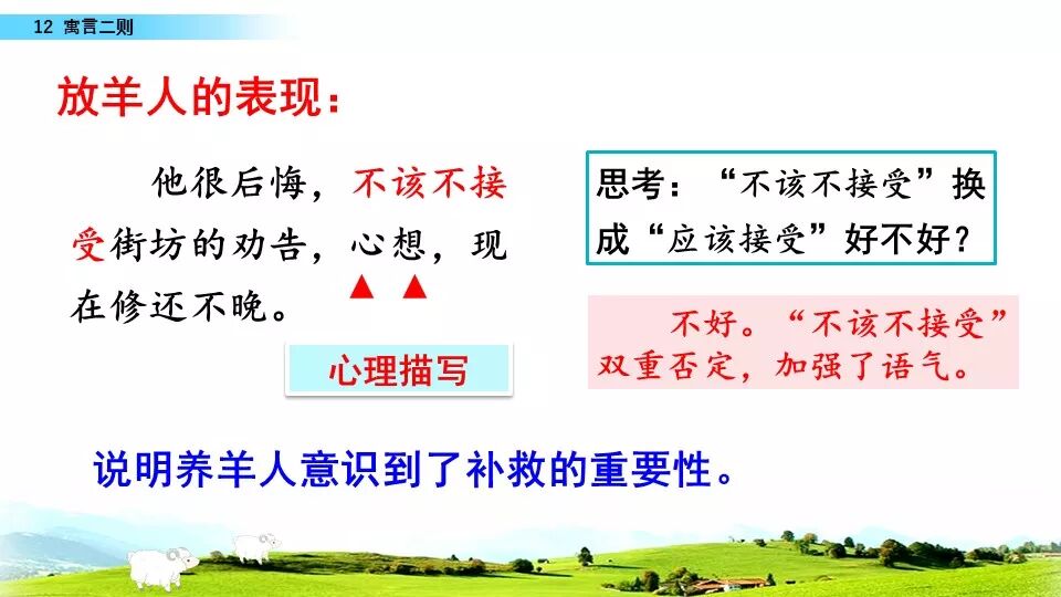 我想对养羊人说,一个人做错了事,只要接受教训,认真改正,就不算晚。我想对种田人说,做事不能过分急躁,不能不顾事物发展的客观规律,否则就会把事情办坏。