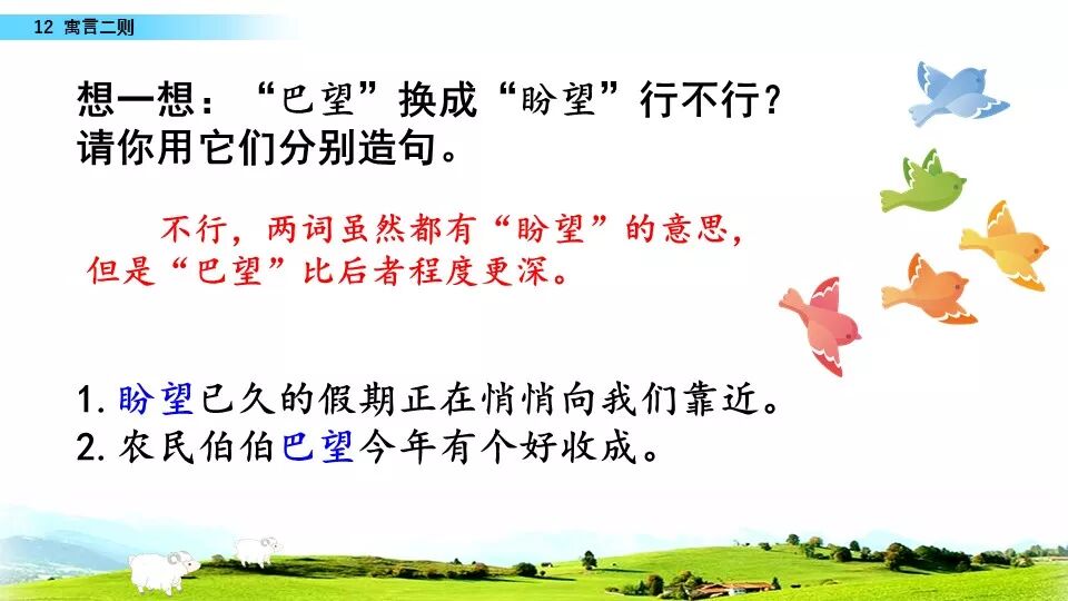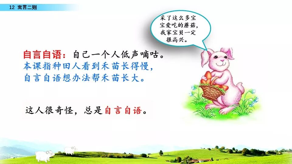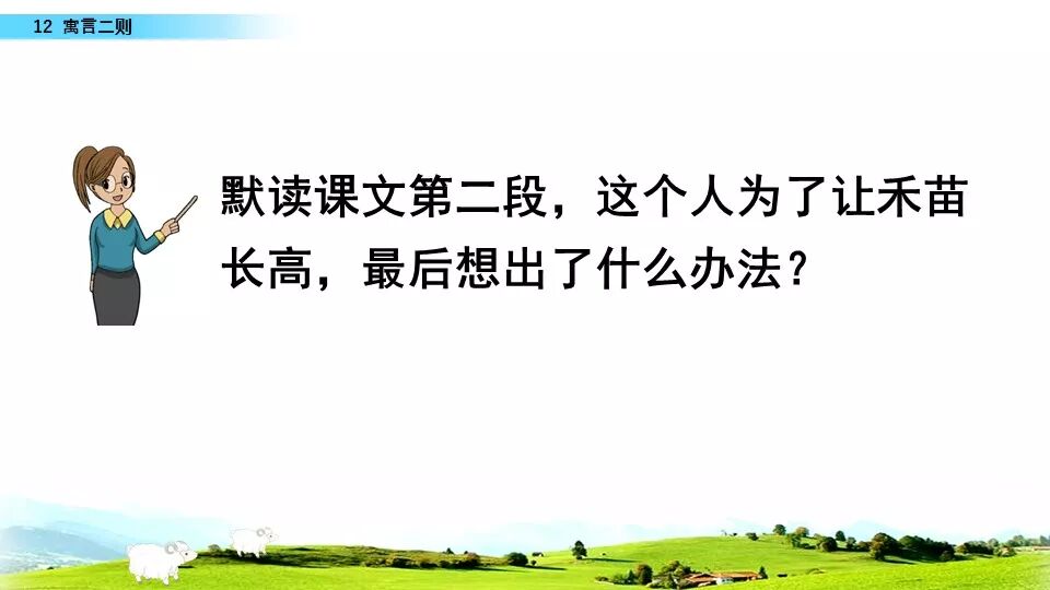一、朗读课文。说说“亡羊补牢”“揠苗助长”两个成语的意思。