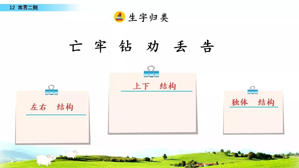 【亡羊补牢】亡,丢失。牢,指养牲畜的圈。“亡羊补牢”指丢失了羊再去修补羊圈。