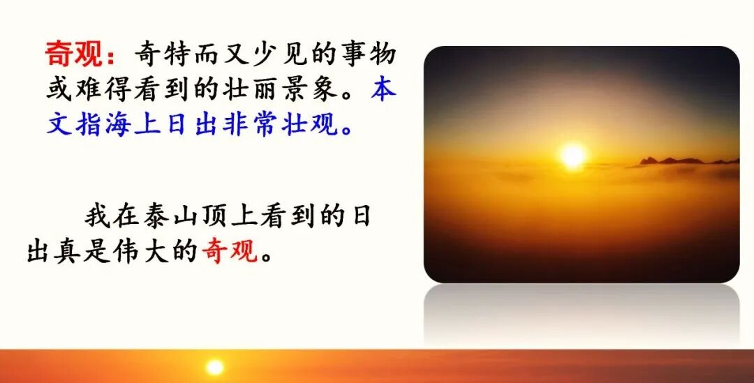 第四部分(⑥):赞叹海上日出是伟大的奇观。