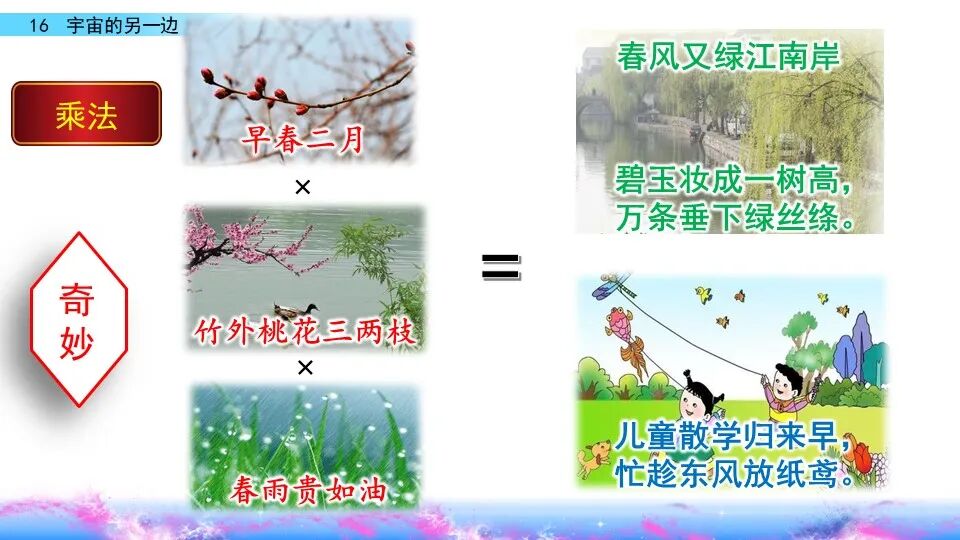 在宇宙的另一边( )加法是这样的( )大地万物加上一场大雪等于一片白茫茫( )那时( )无数的孩子会从家里冲出来( )打雪仗( )堆雪人( )滑雪( )