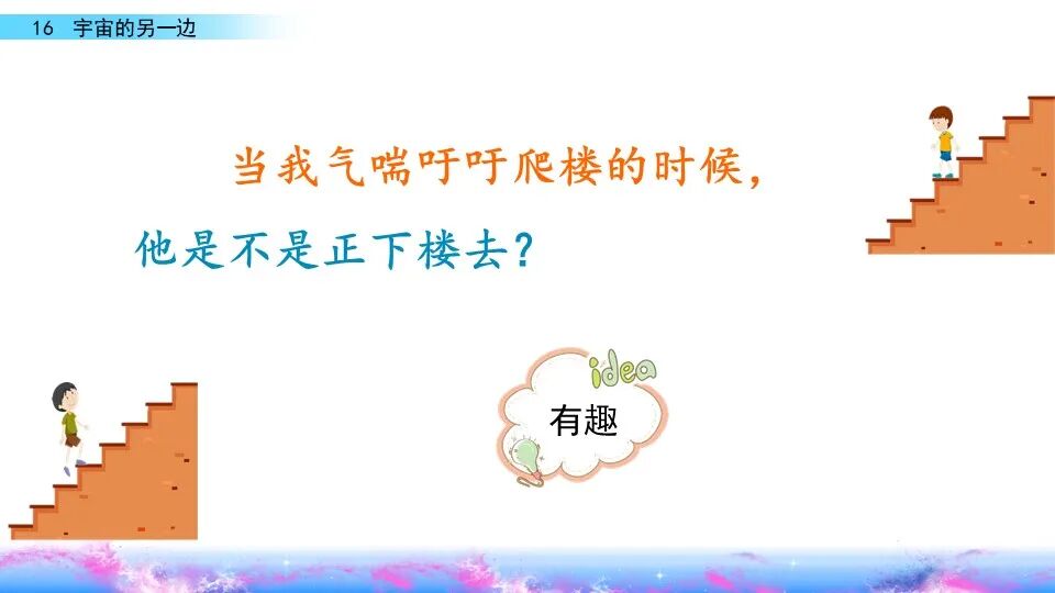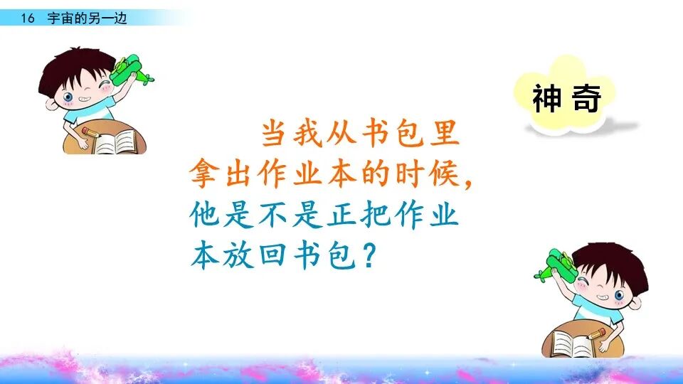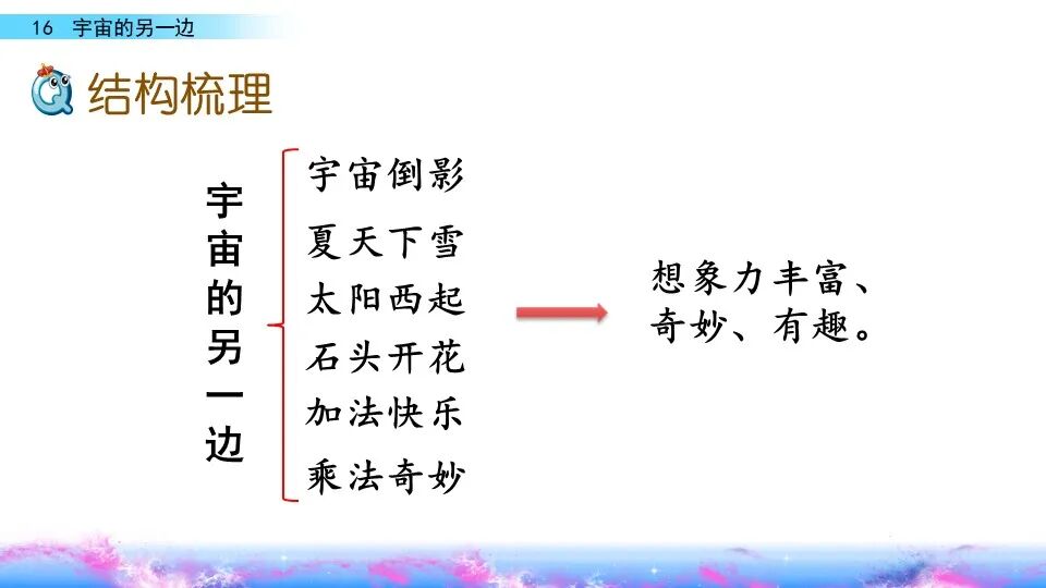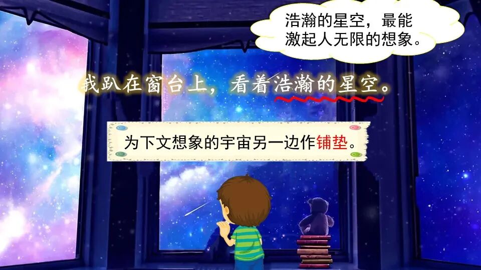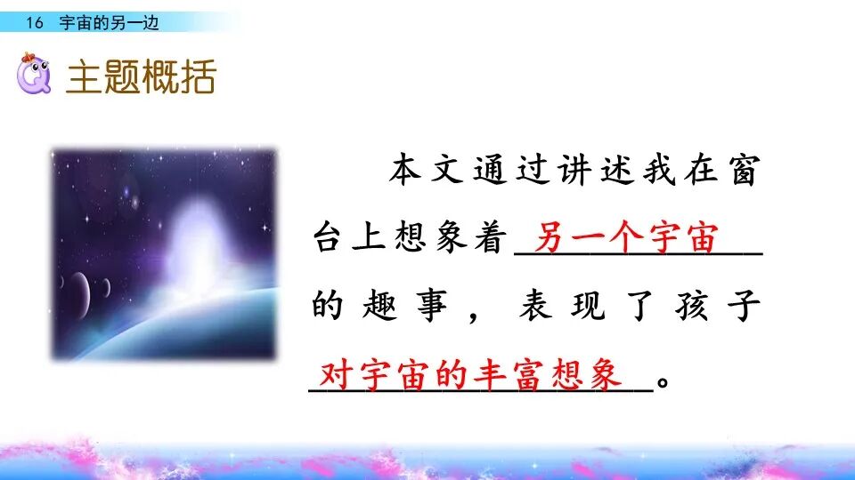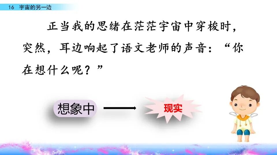 第二部分(6—9):“我”始终沉浸在美好的想象中,想象宇宙另一边神奇的数学课堂。