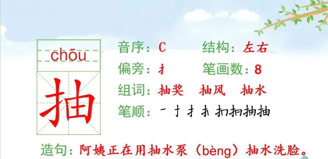 抽(抽水) 纺(纺织) 织(织布) 怎(怎么)