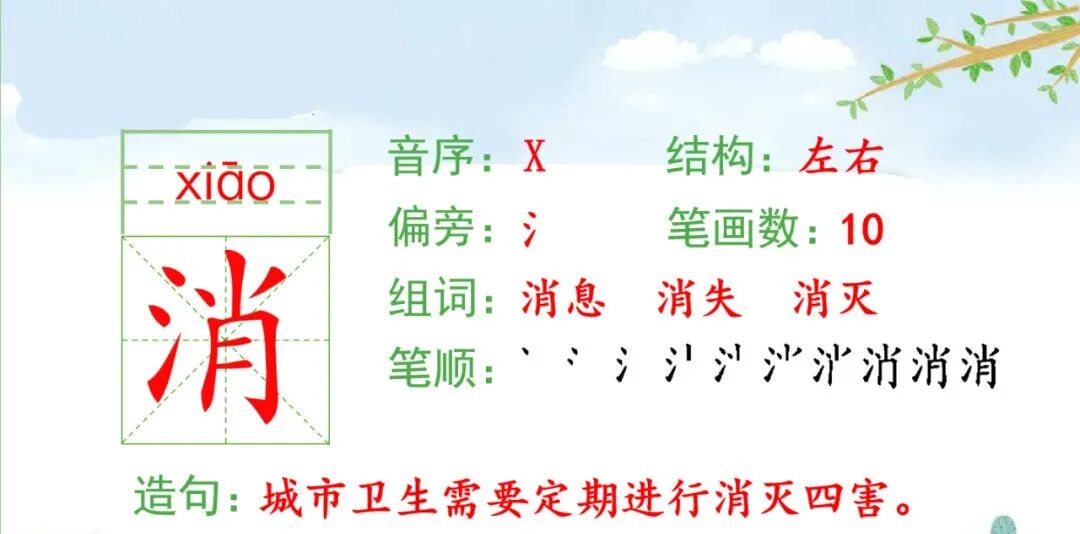 消xiāo(消失)(消灭)(消息)(消化)