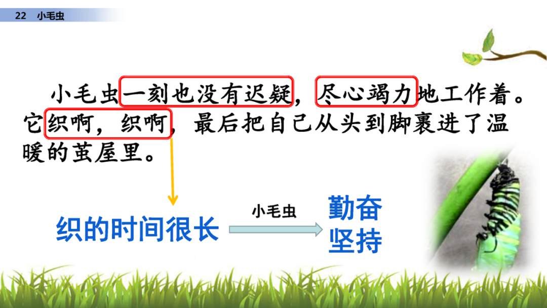 说明小毛虫勤奋、努力。