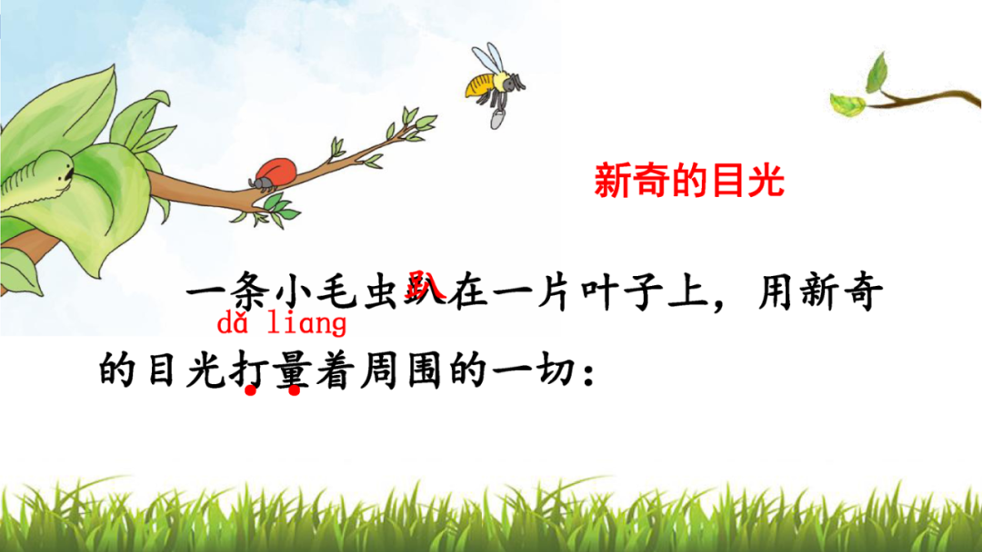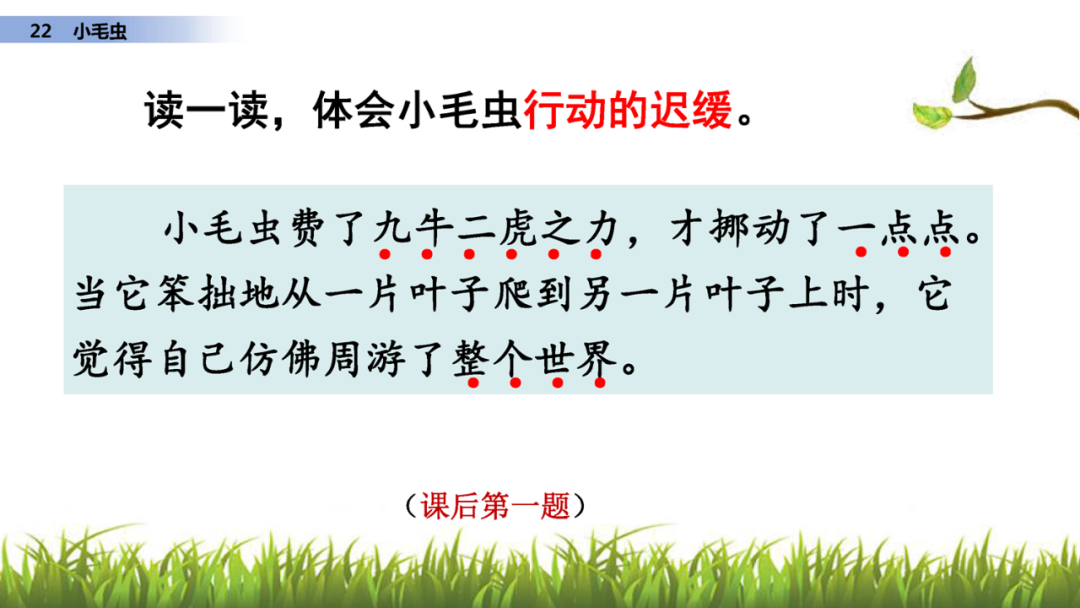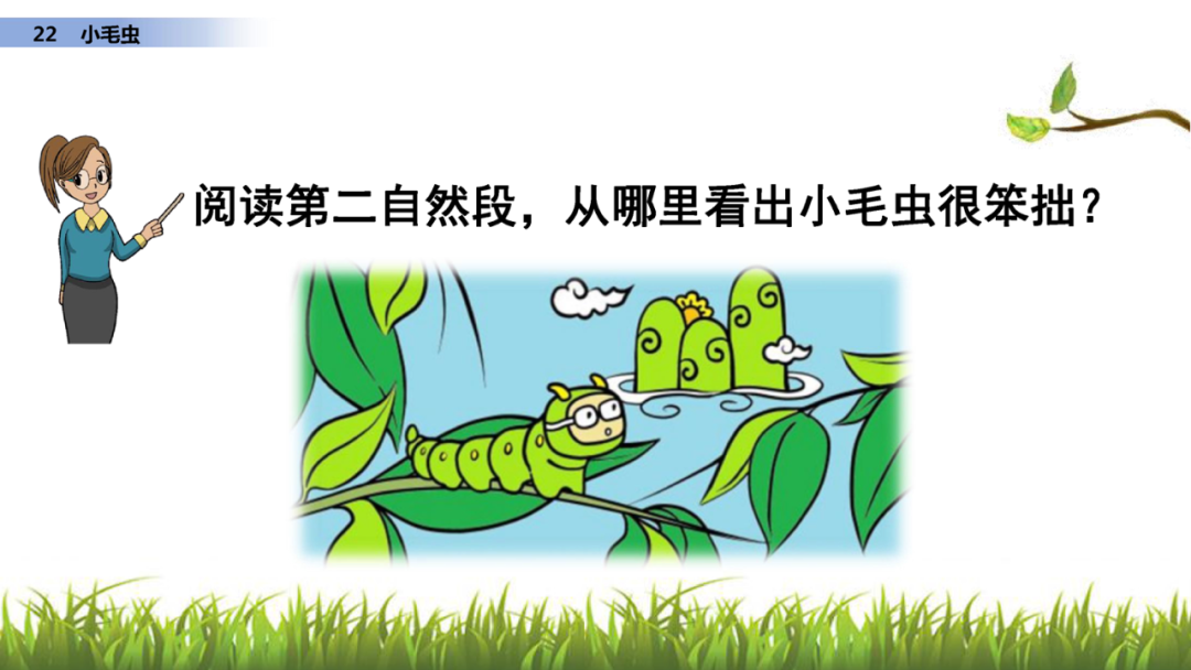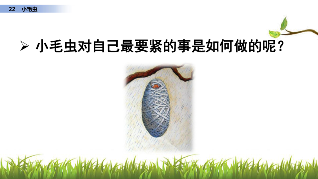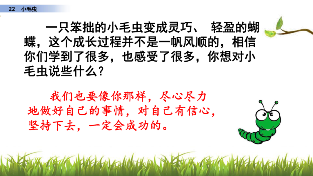 1、读课文,说说课文写了小毛虫的什么事?