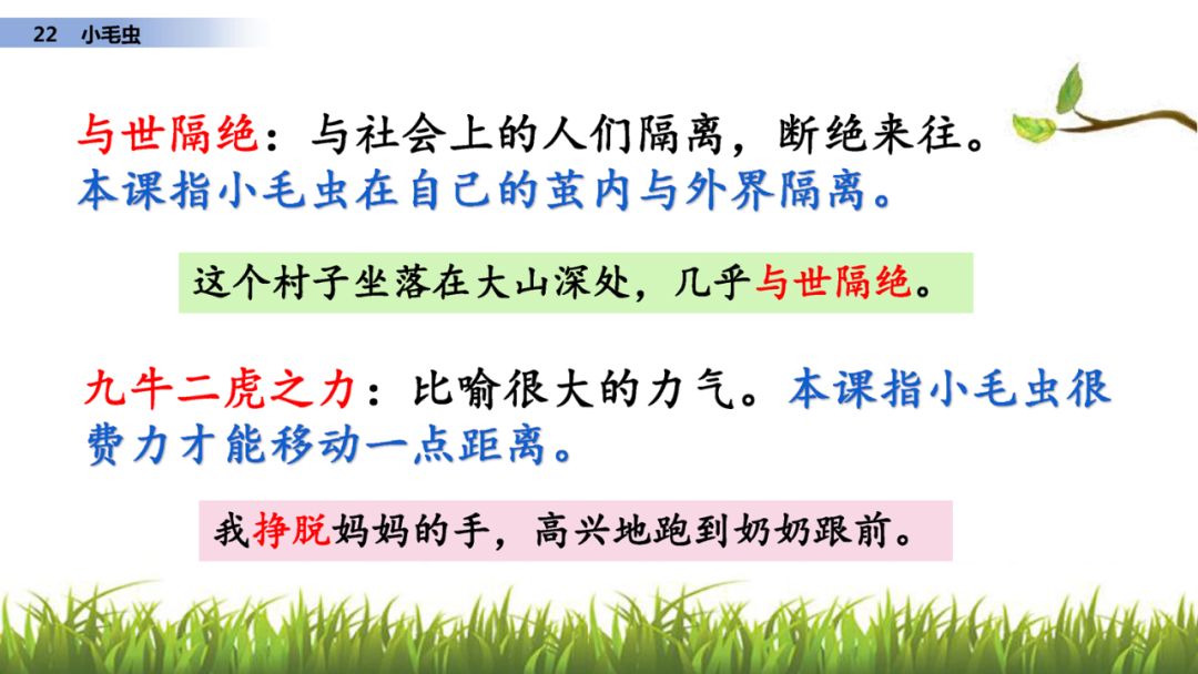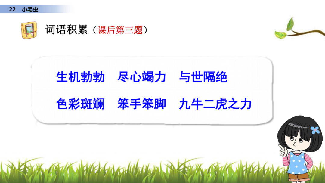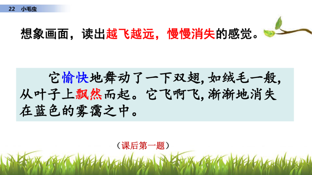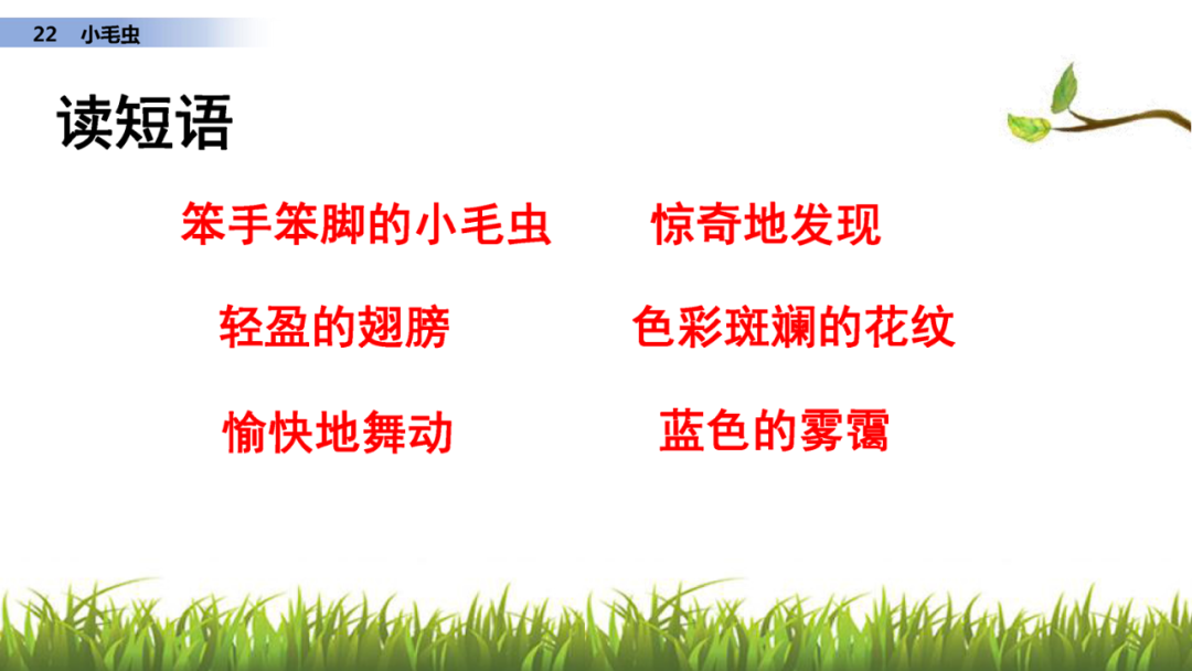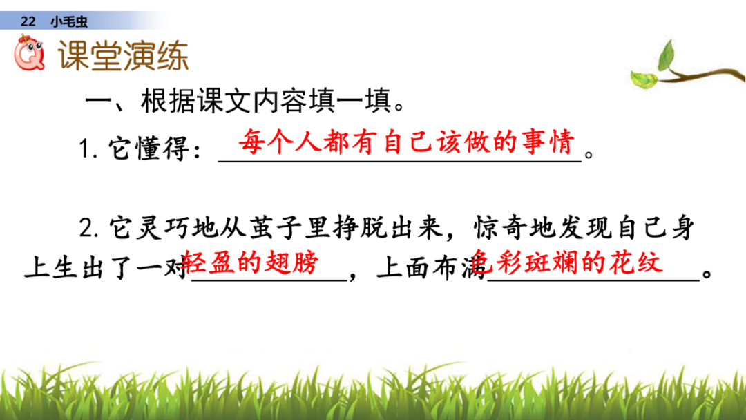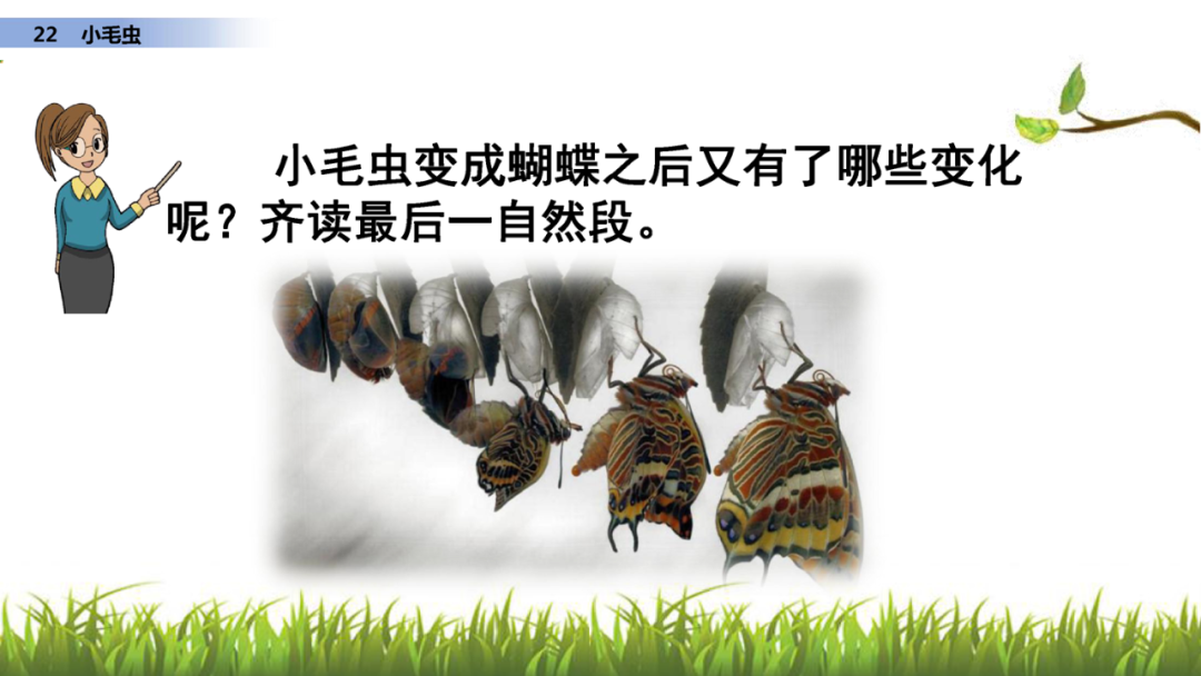1、读课文,说说课文写了小毛虫的什么事?