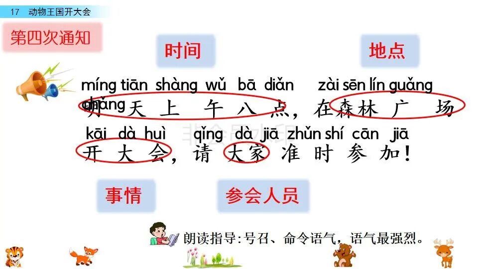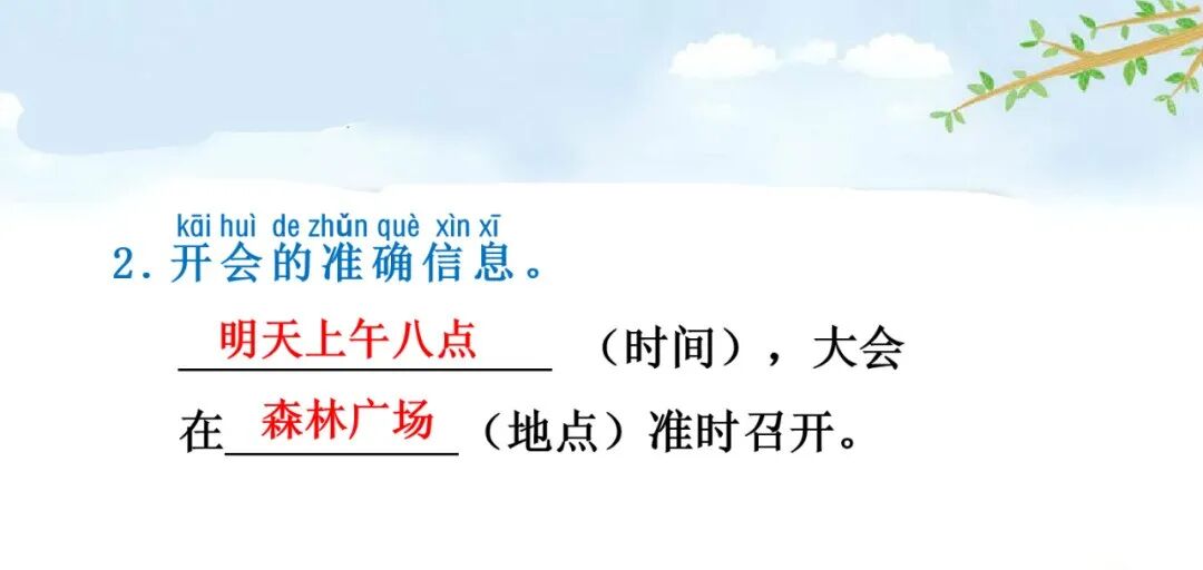 七、通知要把活动的具体的( )、( )、哪些( )参加,通知干什么要说清楚。是谁通知的,( )通知的写清楚。
