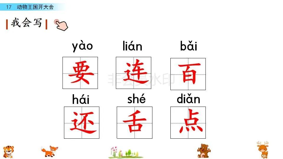 连、还:半包围结构,先里后外,提醒学生“走之旁”三笔写成。