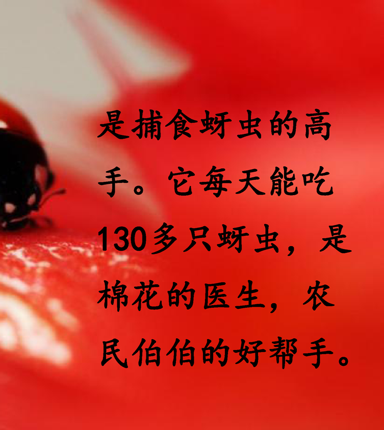 三、七星瓢虫捉棉花叶子上的害虫 啄木鸟捉树上的害虫 青蛙捉田里的害虫