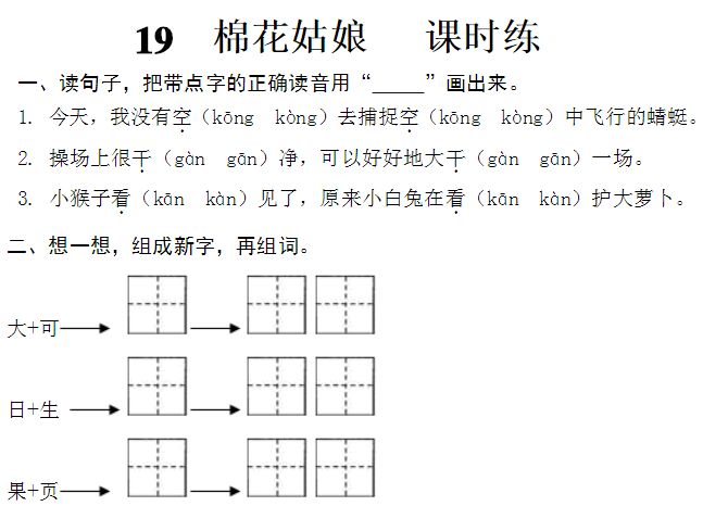 2. 操场上很干(gàn gān)净,可以好好地大干(gàn gān)一场。