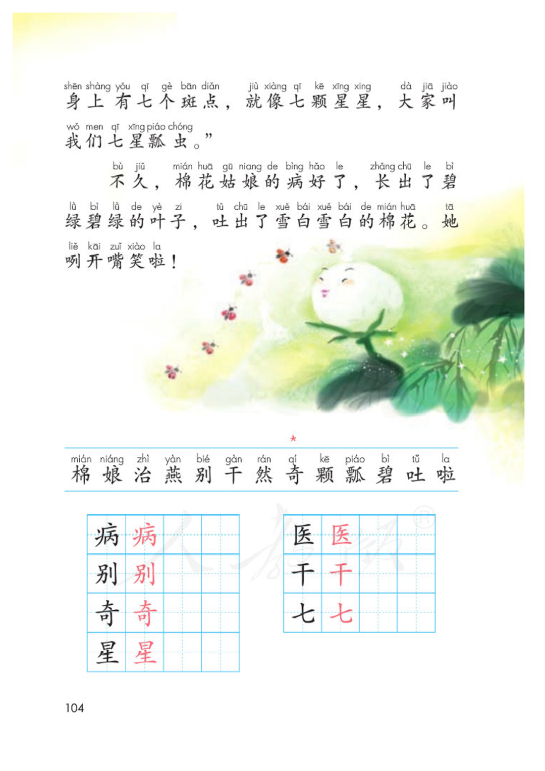 五、想一想,谁把棉花姑娘的病治好了?怎么治的?