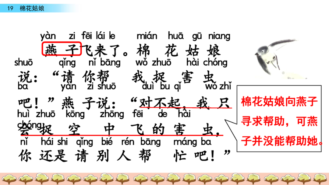 燕子不是不帮助棉花姑娘,而是燕子只会捕捉空中飞的害虫。