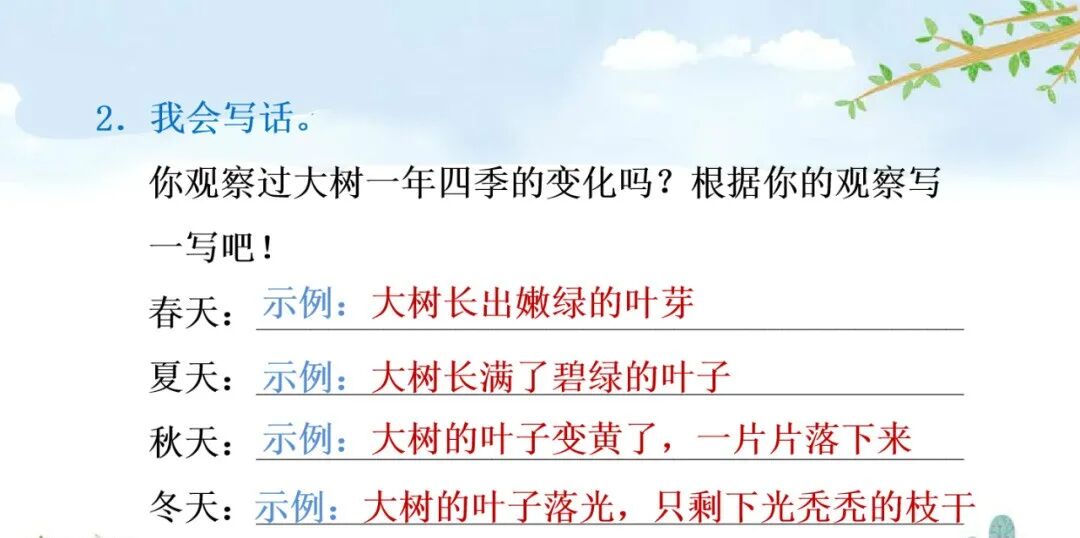 2、小鸟在枝头唱歌。