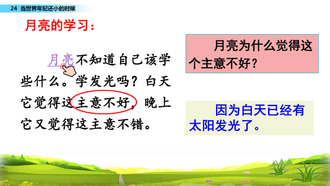 例:月亮不知道自己该学些什么。
