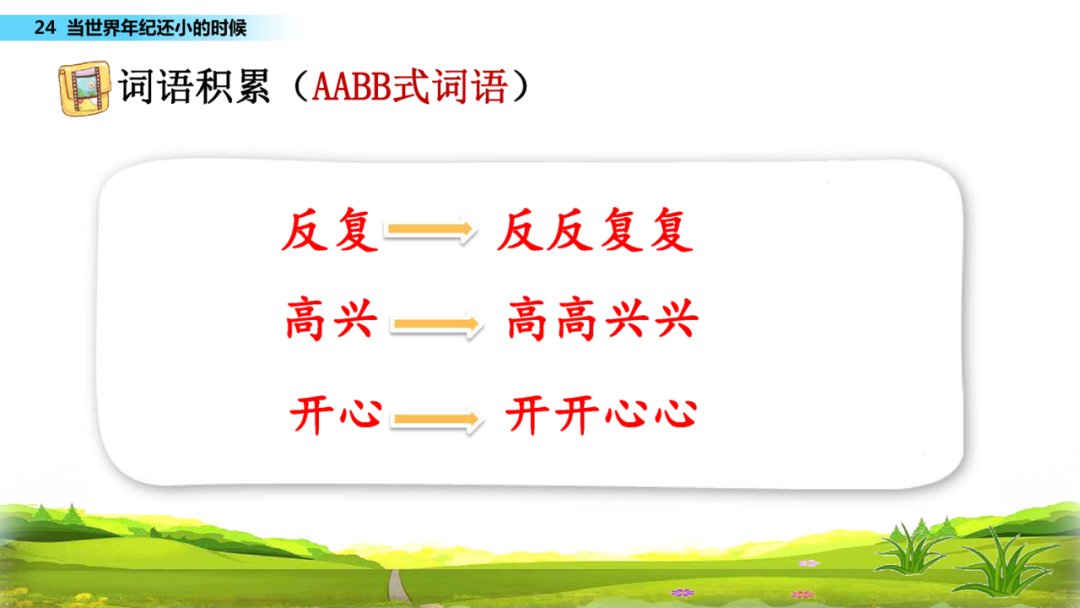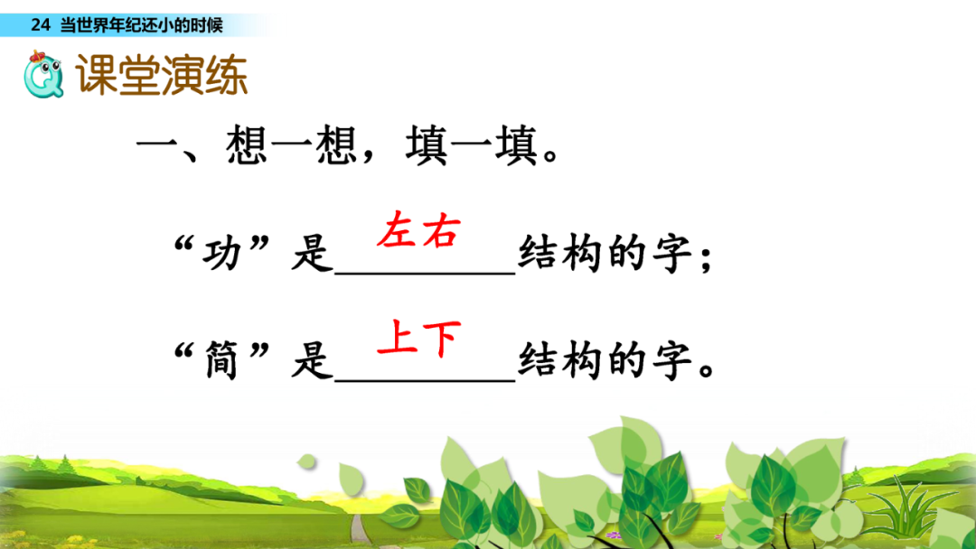 世(世界) 界(世界) 复(复习) 弄(捉弄)