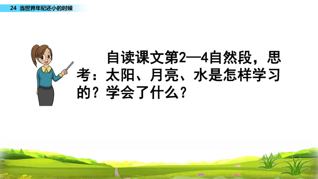 3、太阳、月亮、水它们做着什么,它们明白自己做什么最容易了吗?它们给世界带来了什么?