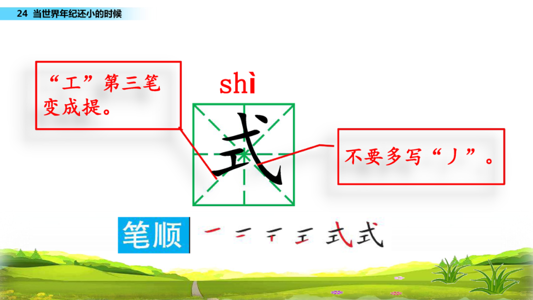 世:注意第一笔横长,左右出头。