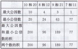 发现:两个数成倍数关系时,它们的最小公倍数是其中的较大数,两个数只有