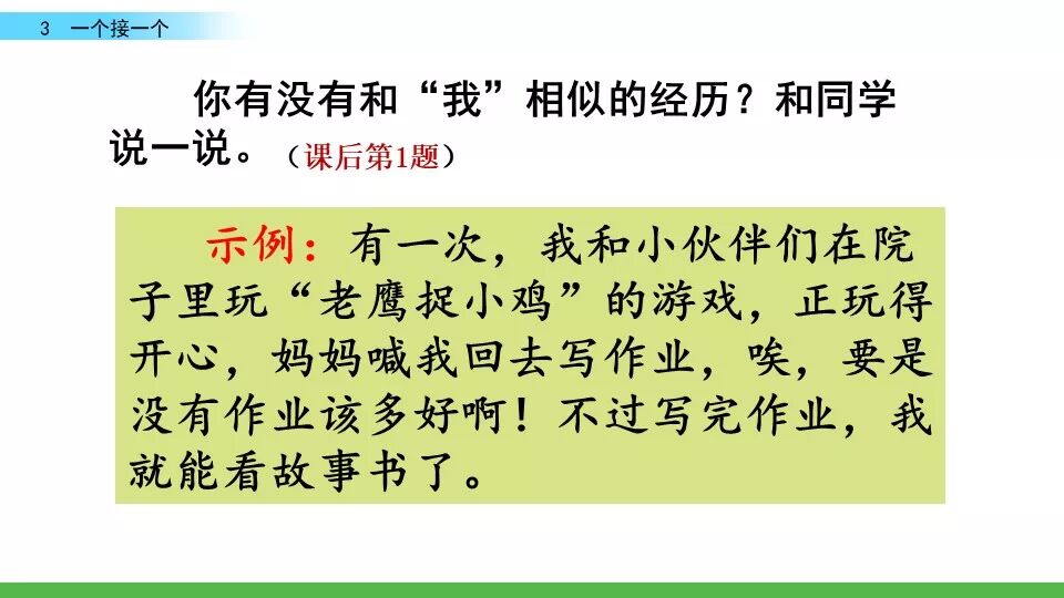 1、小朋友,你有没有和“我”相仿的经历,按课文的句式说一说。