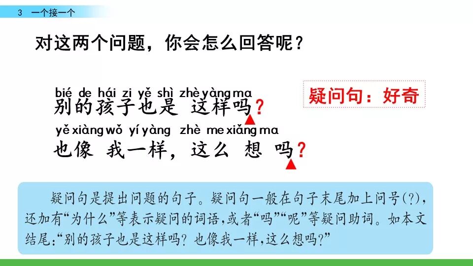 如:本文,“不过,回家睡着了,倒可以做各种各样的梦呢!”这句话是感叹句,感叹句后面用感叹号。句子后面常有语气助词“哪”“呀”“哇”“啊”等。
