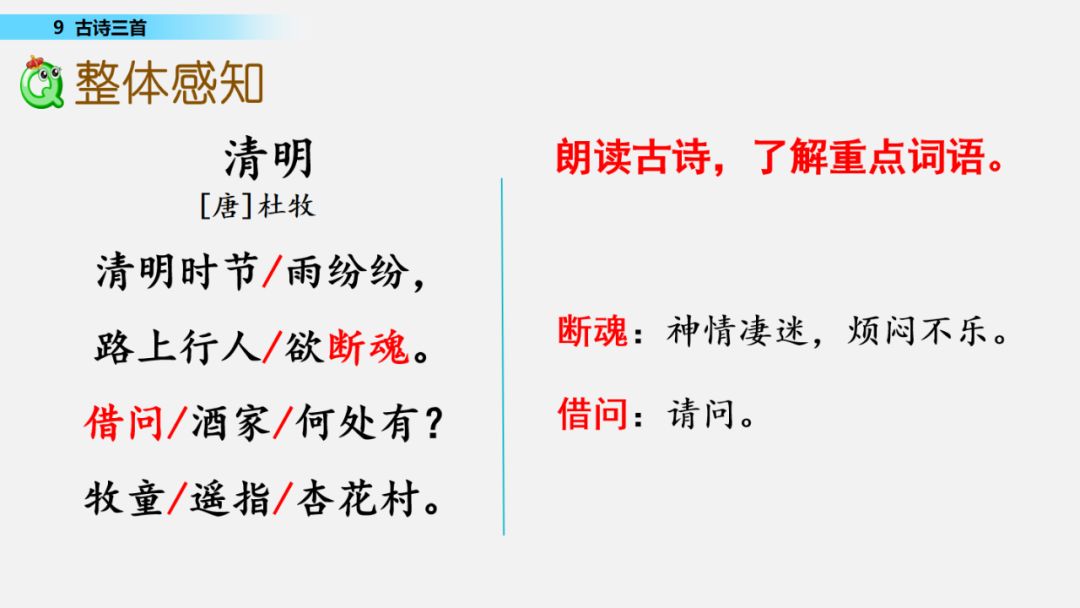 2、《清明》一诗描绘了这个节日怎样的图画?表现了作者什么情感?