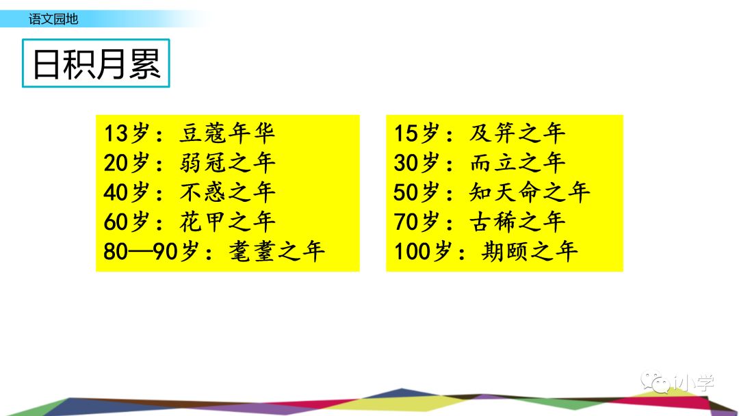 1.小组交流合作:古人不同年龄称呼的有何由来?(板书:3.古人年龄称谓)