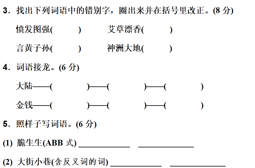 5.(1) 酸溜溜 辣乎乎