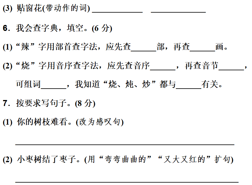(2) 弯弯曲曲的小枣树结了又大又红的枣子。