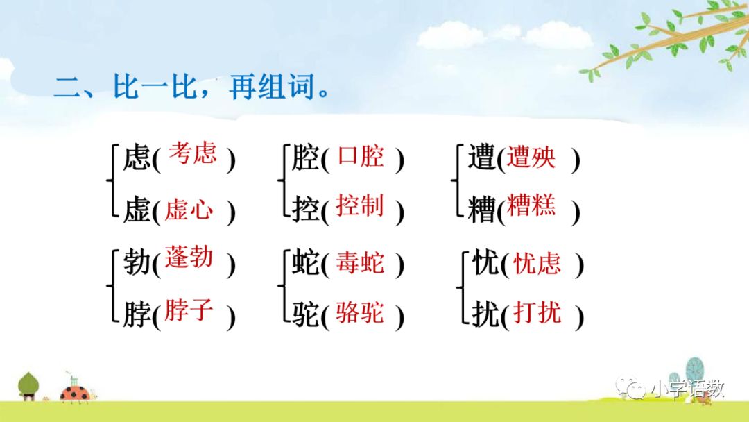 忧(忧愁)优(优秀) 虑(考虑)虎(老虎)