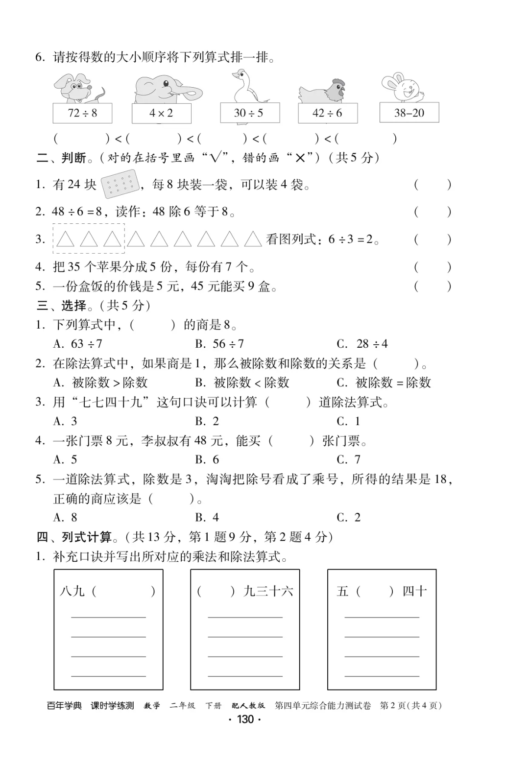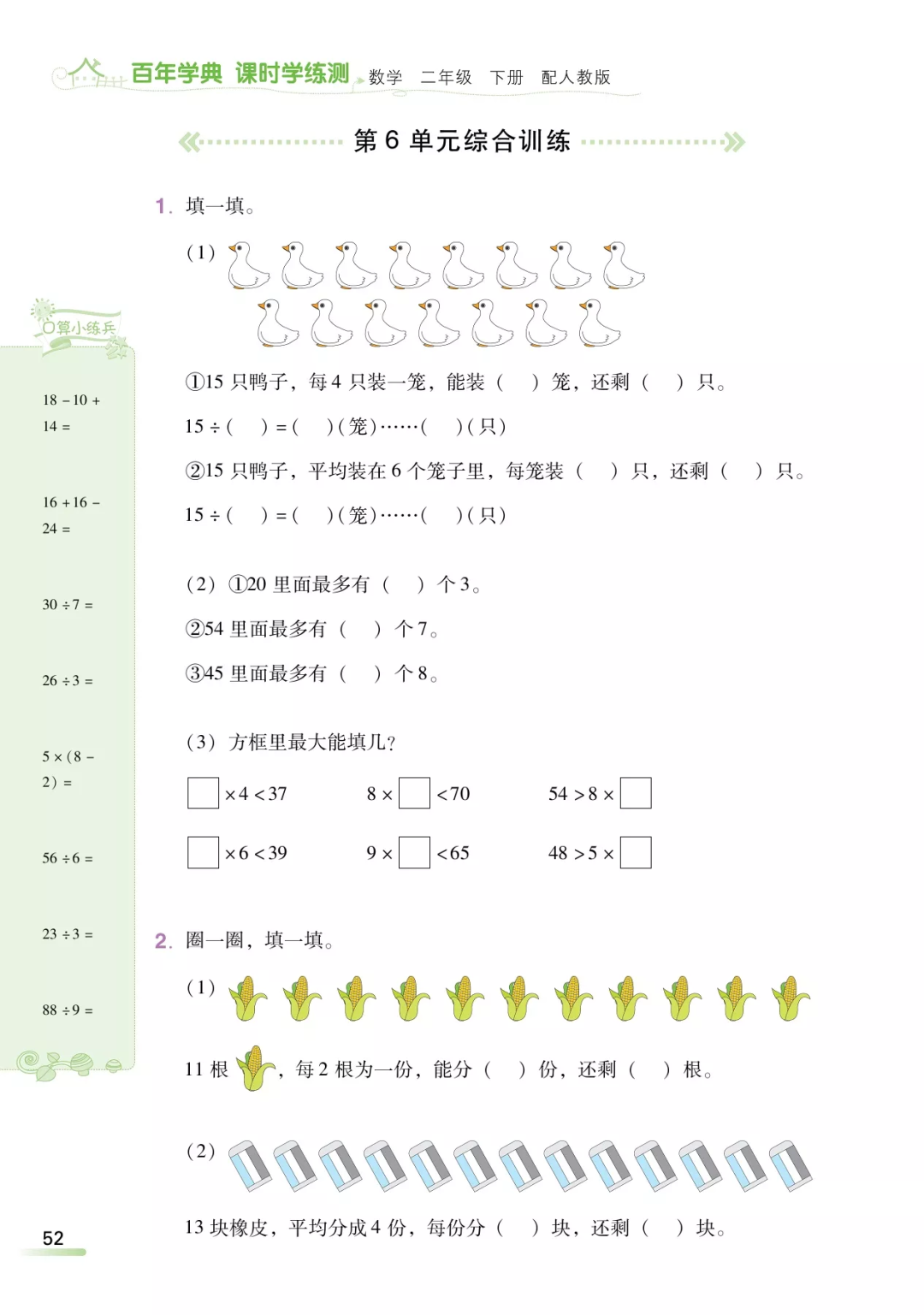 点此领取:人教版数学二(下) 《课时学练测》1-5单元