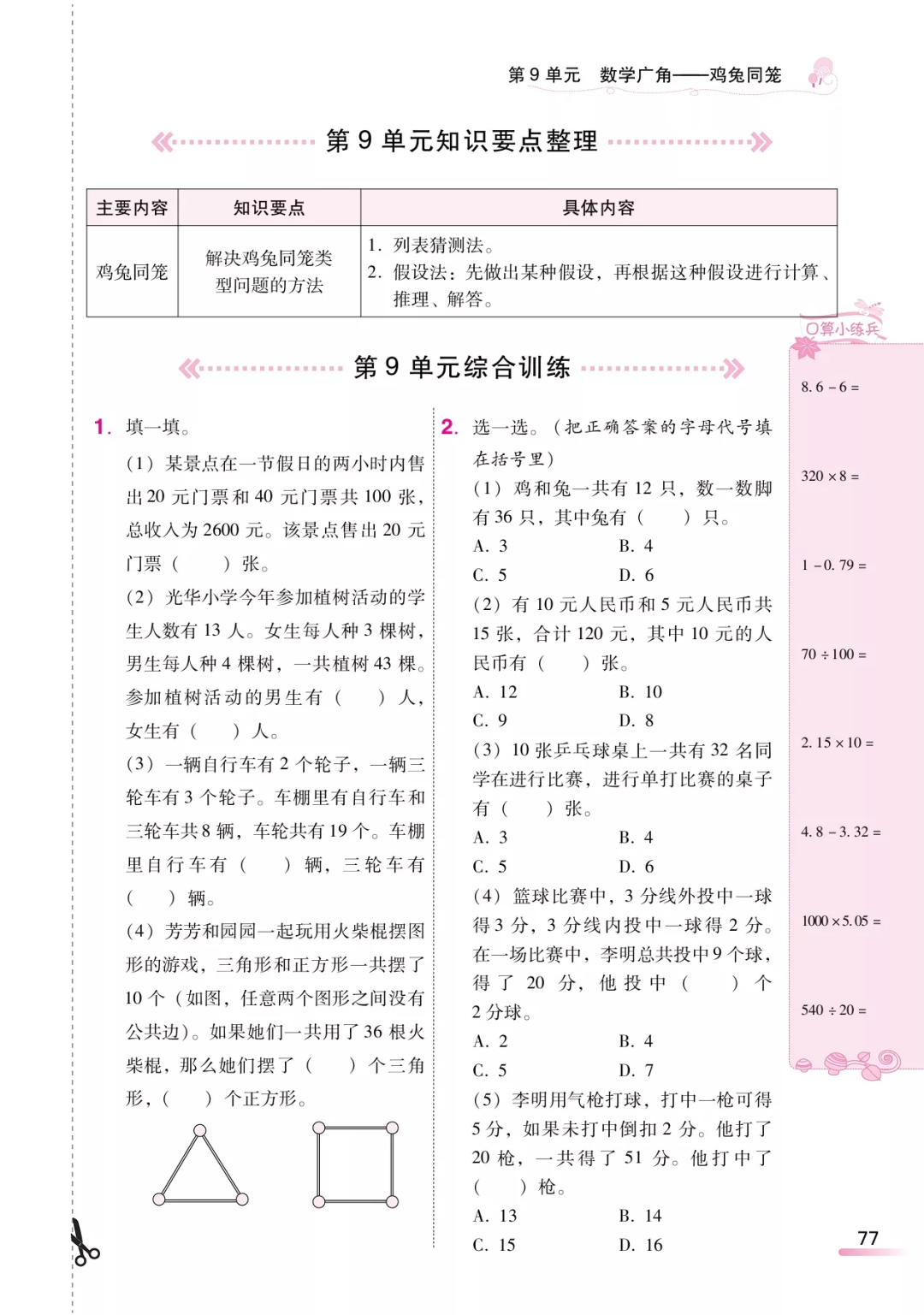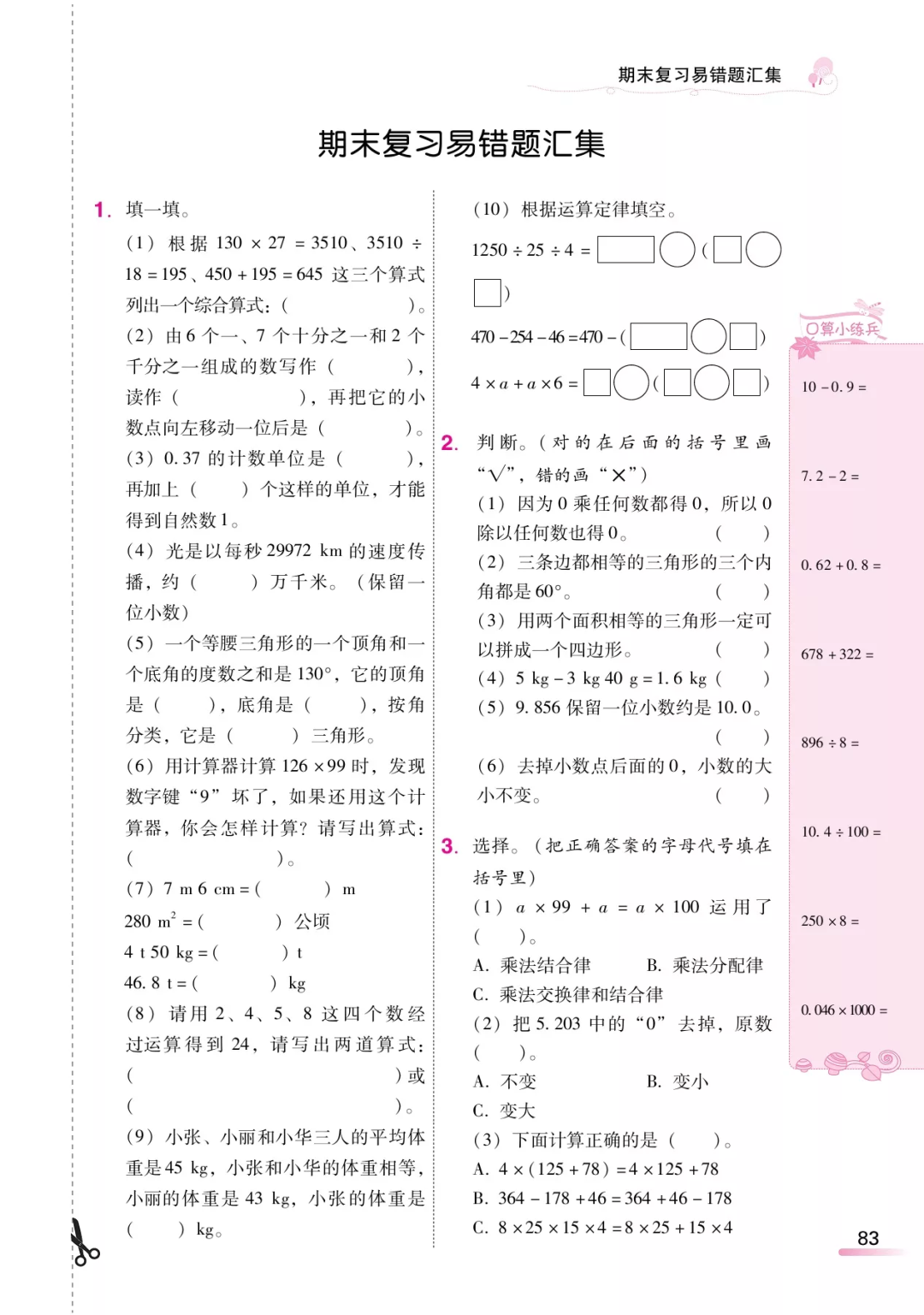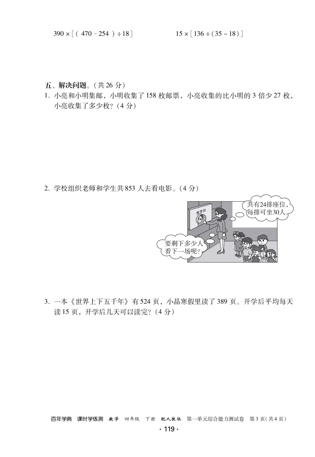 点此领取:人教版数学四(下) 《课时学练测》1-5单元