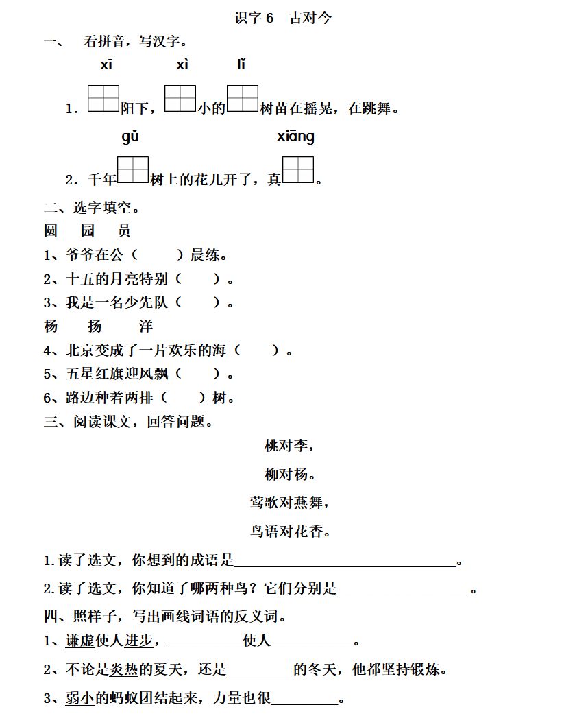 6、路边种着两排(杨)树。