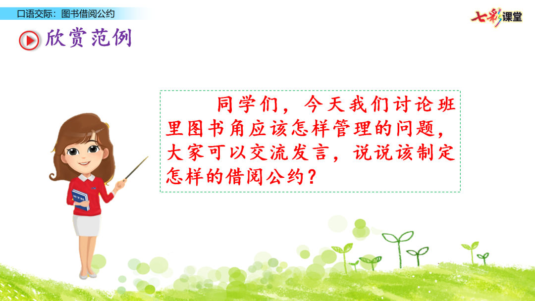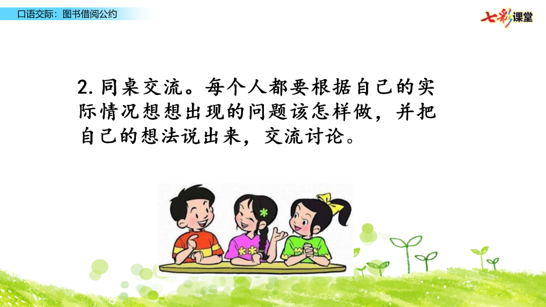 兰兰:我们应该在每天的放学后借阅图书。每人每次只能借阅一本,每隔一周借阅一轮。